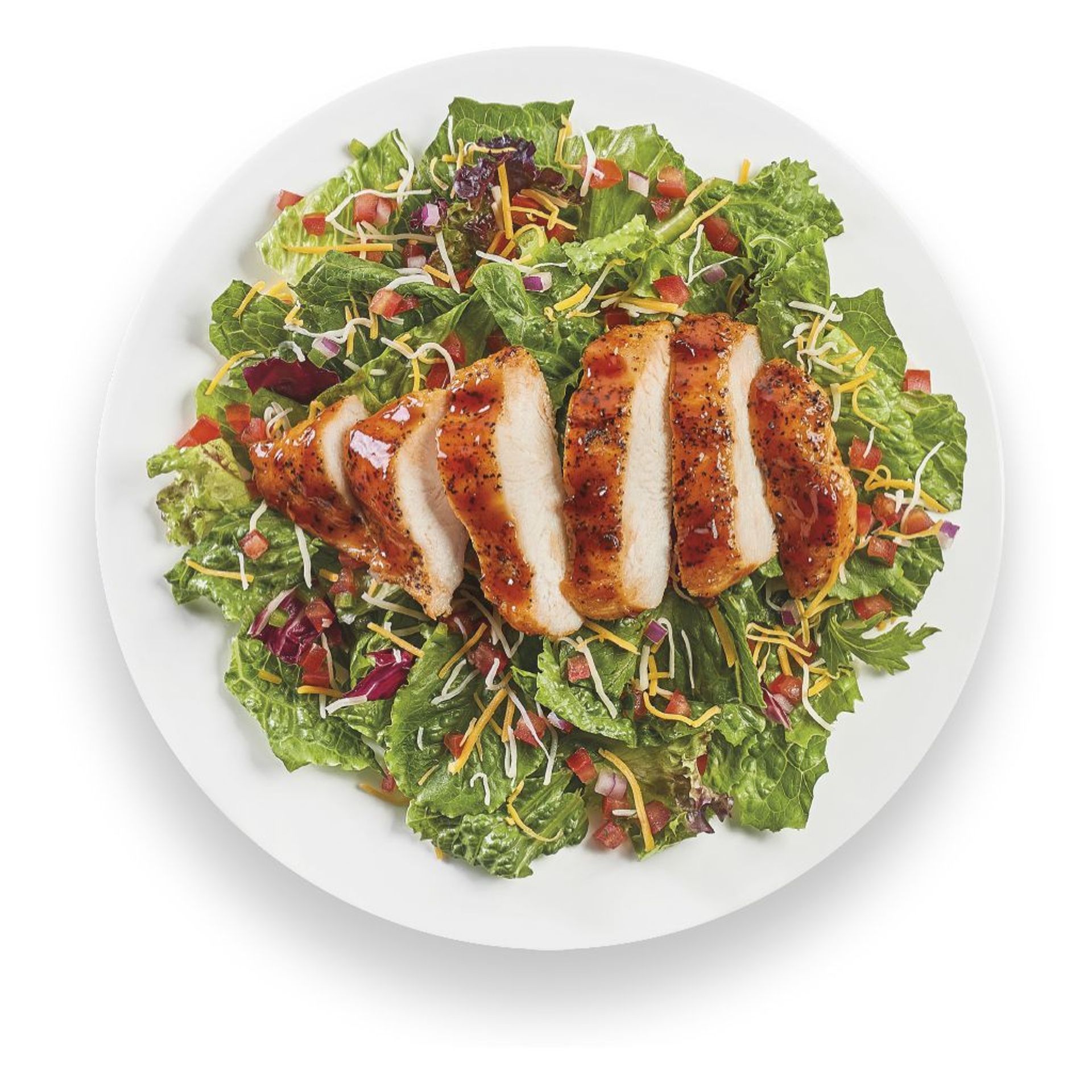 Lechuga fresca, pico de gallo y mezcla de tres quesos, cubierta con pollo honey BBQ a la parrilla( 170 g), servida con aderezo honey ranch.